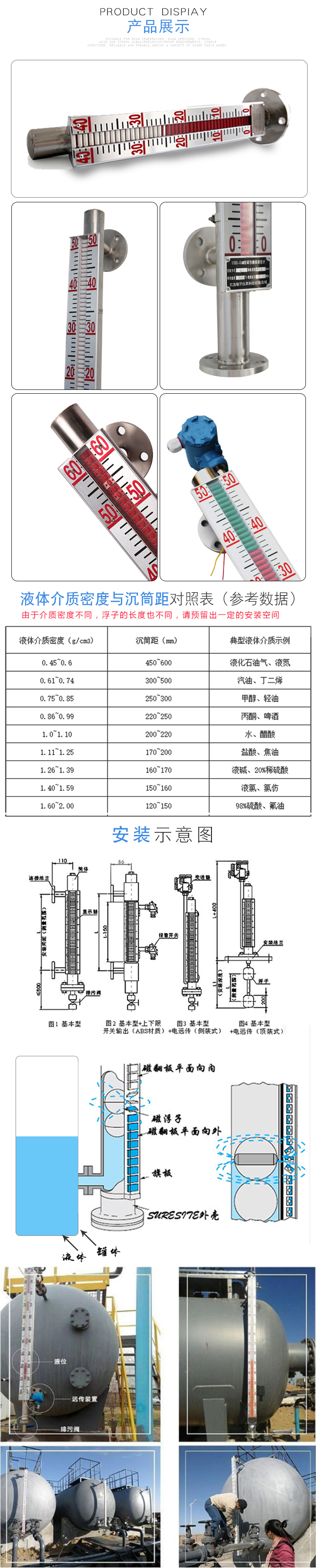2、主體周圍不容許有導(dǎo)磁體靠近否則直接影響液位計(jì)正確工作。
