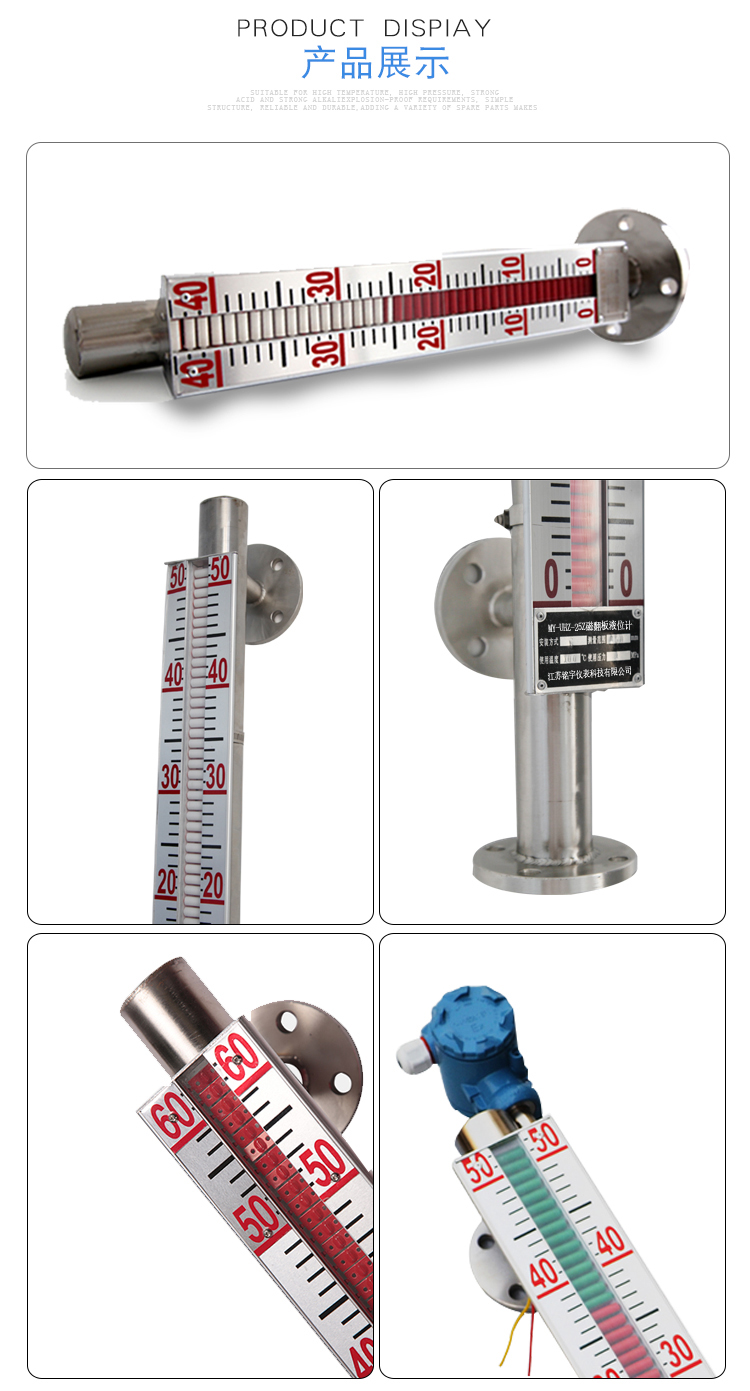 適合容器內(nèi)液體介質(zhì)的液位、界位的測(cè)量。除現(xiàn)場(chǎng)指示,還可配遠(yuǎn)傳變送器、報(bào)警開(kāi)關(guān)、控制開(kāi)關(guān),檢測(cè)功能齊全。指示新穎,讀數(shù)直觀、醒目,觀察指示器的方向可根據(jù)用戶需要改變角度。測(cè)量范圍大,不受貯槽高度限制。指示機(jī)構(gòu)與被測(cè)介質(zhì)安全隔離,因而密封性好,可靠性高,使用安全。結(jié)構(gòu)簡(jiǎn)單,安裝方便,維護(hù)費(fèi)用低。耐腐蝕、無(wú)需電源、防爆。